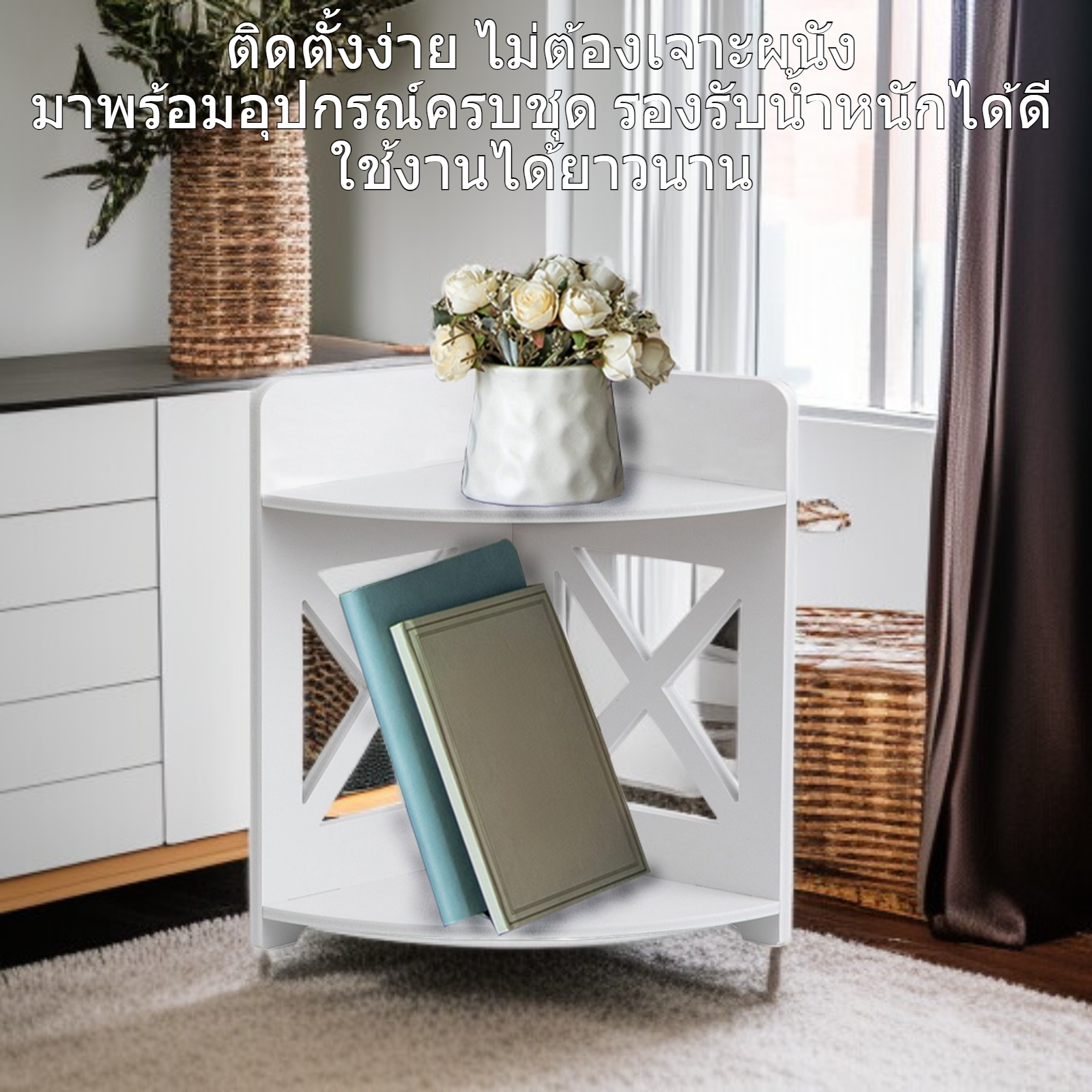 ● ประหยัดพื้นที่ด้วยดีไซน์เข้ามุม เหมาะสำหรับห้องน้ำและห้องต่าง ๆ ช่วยจัดเก็บของใช้ให้เป็นระเบียบและหยิบใช้งานง่าย