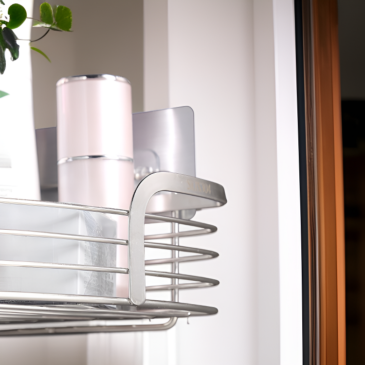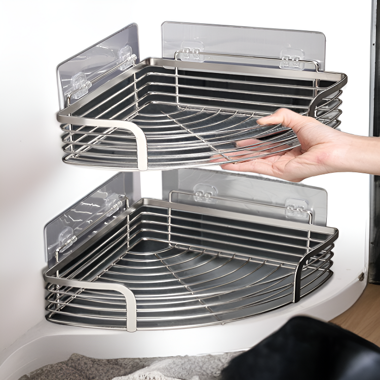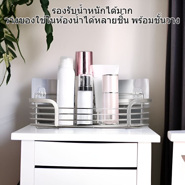 ชั้นวางของในห้องน้ำเข้ามุม สแตนเลส 304 ไม่ต้องเจาะ สามคน