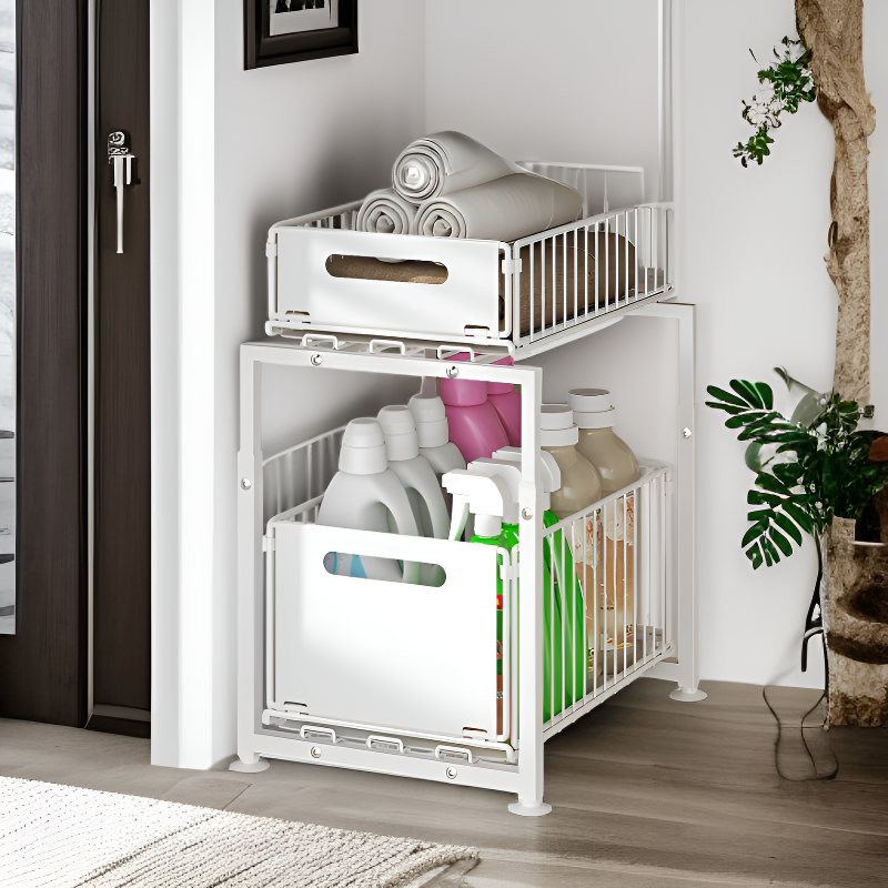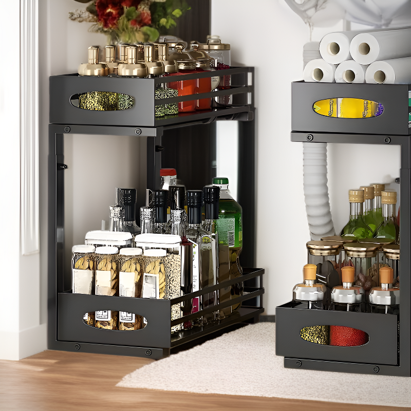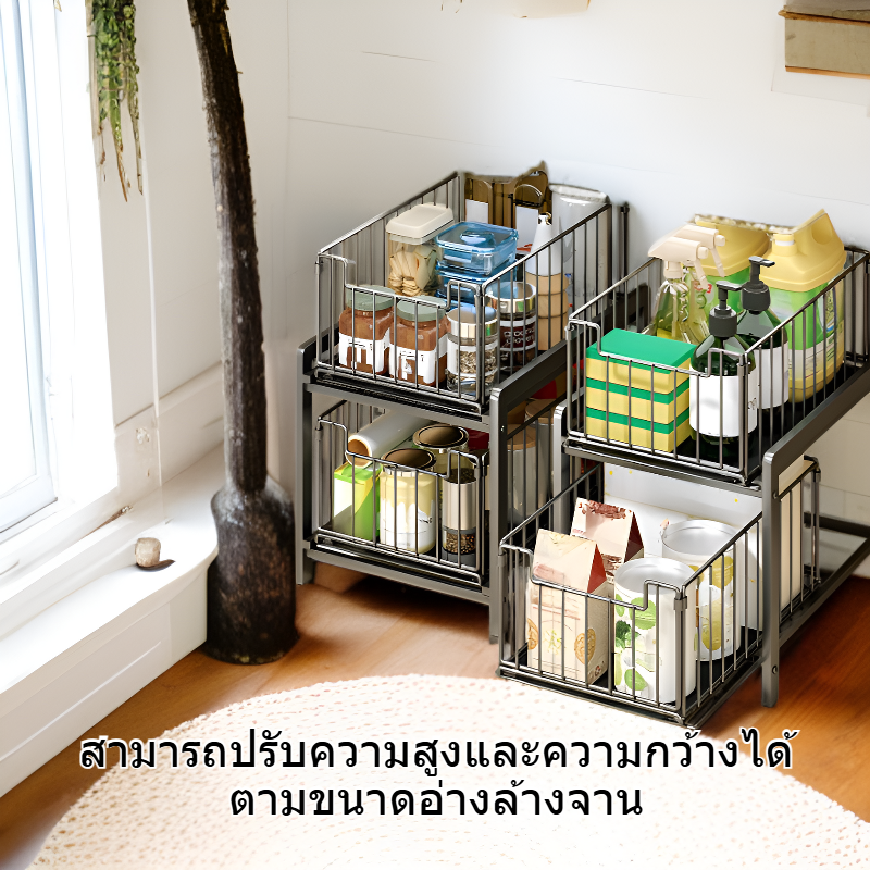 ชั้นวางของสองชั้นใต้อ่างล้างจาน ปรับได้สำหรับตู้ครัว
